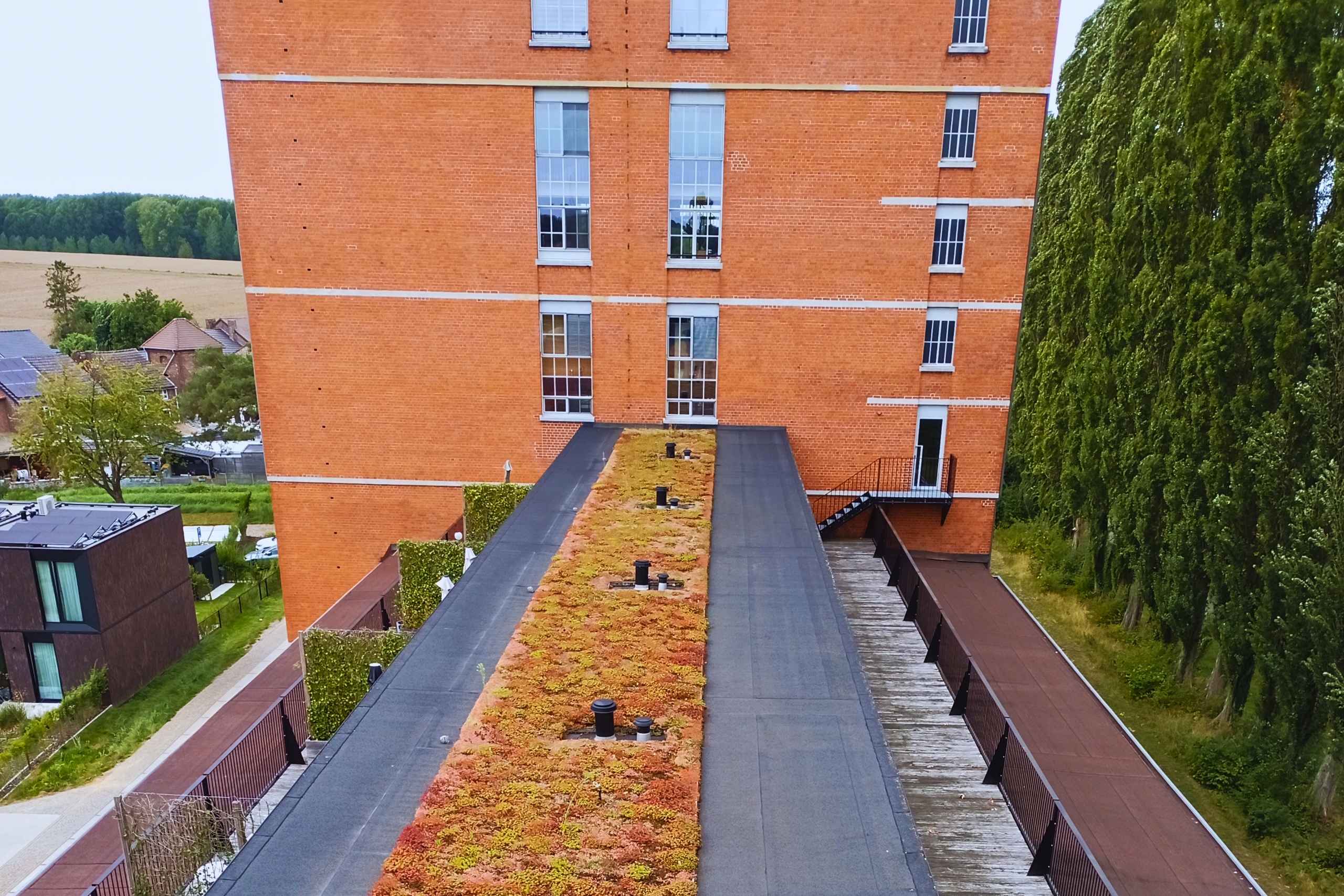 Steeds meer steden kiezen bewust voor het vergroenen van oude fabrieksgebouwen. Ze passen perfect in groene woonprojecten en recreatieve zones, dankzij hun grote dakoppervlakken en hun plaats in de historische stadsstructuur.